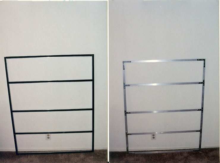The custom support frame is particularly useful for displaying very fragile or heavy textiles vertically. It also helps distribute the weight of the textile, provide air circulation, and makes it easier to clean the back. The frame is made of aluminum strips 1" wide and 1 /4" thick. Aluminum is used because it does not deteriorate textiles and is durable for heavier pieces. The frame is customized to match the shape of the textile with additional aluminum stripes in the middle, depending on size and weight of the textile. Lining is attached to the textile, then Velcro is used to attach the textile to the frame. The hooked part is glued to the frame and the fuzzy (woolly) part is hand-sewn to the lining with additional diagonal basting stitches from both sides of the fuzzy Velcro part to help to keep the weaving and lining together. Attaching the fuzzy (woolly) to the textile gives opportunity to roll weaving for storage and transportation without the hooked part damaging the textile. The support frame is portable because it can be easily disassembled and reassembled.